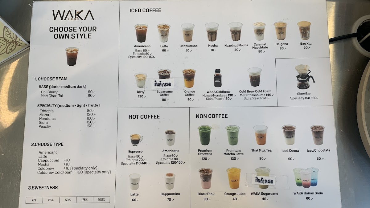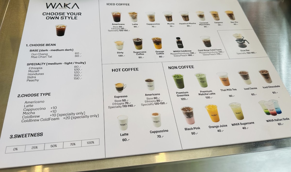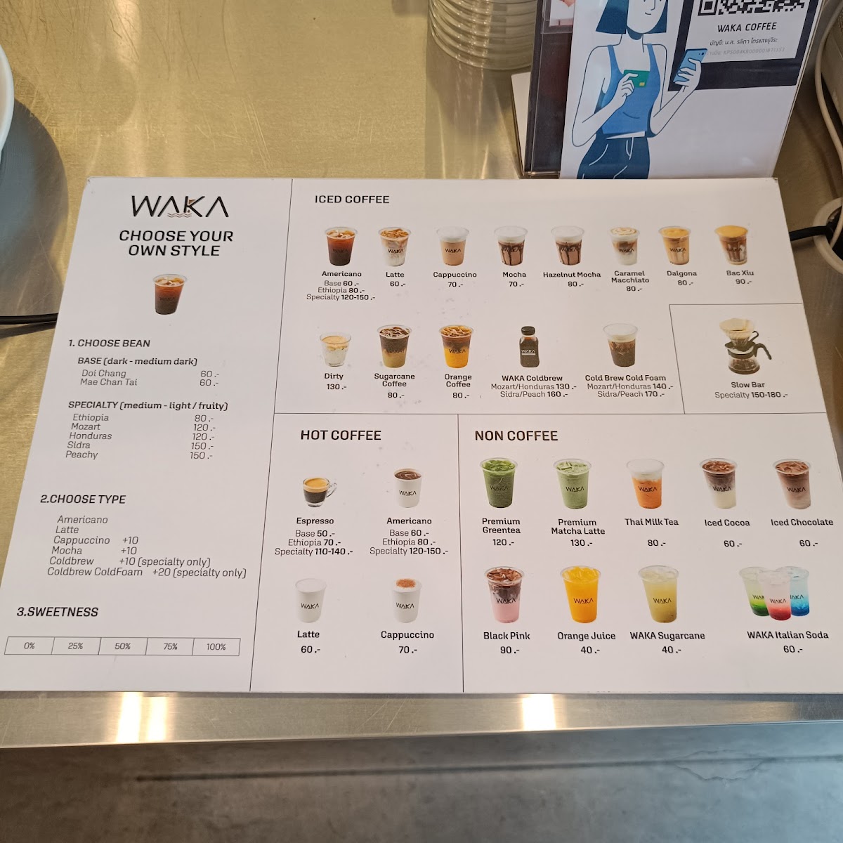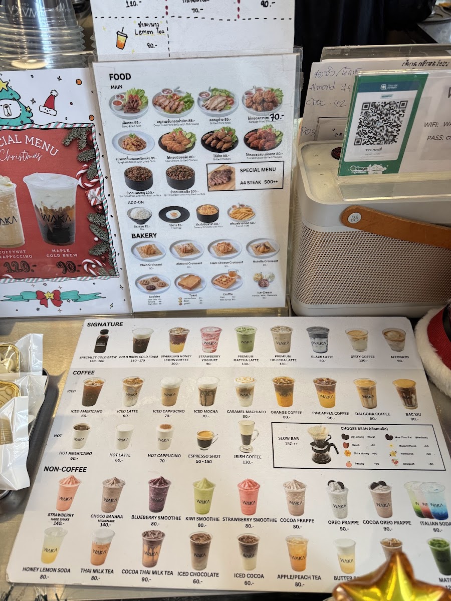 Introducing WAKA COFFEE ตลาดต้นสัก คอร์เนอร์, a charming coffee shop nestled in Nonthaburi, Thailand. This cozy café serves as an inviting space for coffee enthusiasts and board game lovers alike. With a diverse menu featuring specialty coffee beans, WAKA COFFEE ensures each cup commands attention, offering unique flavors like their famous Peachy cold brew. Customers rave about the friendly service and affordable prices, creating a welcoming atmosphere. The café’s selection extends beyond coffee, with a small yet delightful food menu complementing the beverages.